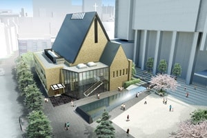 新しい教会堂には省エネと維持管理費の削減が計画され、照明は主としてLED照明を採用、リモコン制御でグループ別の点滅管理が出来ます。冷暖房は室外機を複数台に分ける事によりきめ細かい冷暖房の管理が可能となり、ランニングコストとメンテナンス性が向上しました。建物の維持管理に関しても現教会堂より平均3割程度削減される計画です。