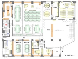一階の教会学校室は普段は7部屋に区切って使用されますが、大きな集会の際にはパーティションを移動し一つの部屋として258名が座る事が出来ます。会議室も2部屋に分かれますが、長老会などでは一つの会議室となります。各階ともバリヤフリー化が施されています。
