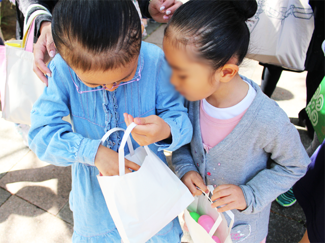 イエス・キリストの復活を祝ってイースター礼拝を行い、「卵探しゲーム」をして遊びます。礼拝後は、お祝いの会があります。