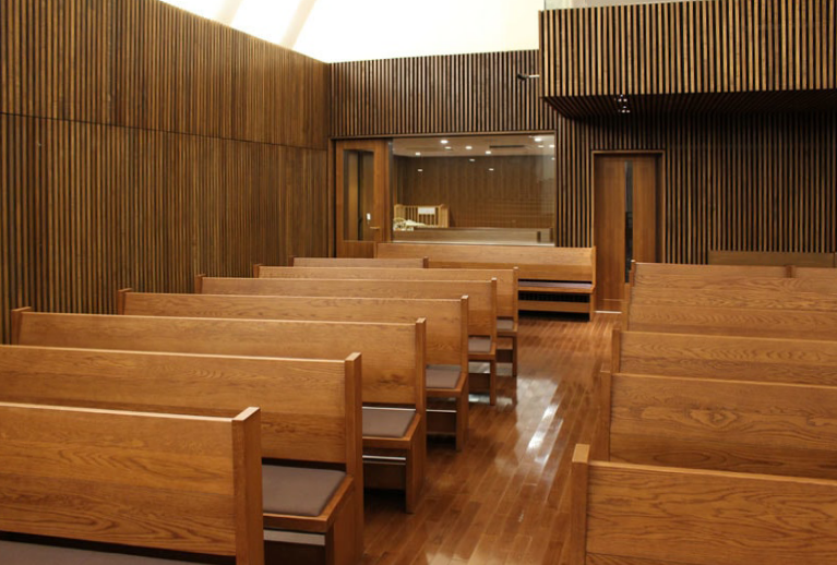 お子さまがむずかるようでしたら、礼拝堂後方の親子礼拝室をご利用ください。親子礼拝室は、親子が一緒に捧げる礼拝の場です。お子さまとご一緒に、讃美歌を歌い、お祈り下さい。